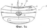 На фиг.1d и 3 видно также, что на обращенной к телу стороне 22 второй части 8 корпуса выполнена захватная выемка 30 в виде сквозного проема через всю вторую часть 8 корпуса, причем этот проем расположен в области второй части 8 корпуса, слегка наклонной в направлении от тела. Благодаря этому можно захватывать рукой и производить различные манипуляции с устройством 2 в целом или только со второй частью 8 корпуса.On fig.1d and 3 it is also seen that on the side of the