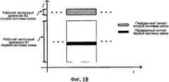 Изобретатели настоящего раскрытия обнаружили, что первую связь и вторую связь можно осуществлять способом мультиплексирования с временным разделением (TDM) или способом мультиплексирование с частотным разделением (FDM), таким образом избегая таких помех. Фиг. 1A - схематическая диаграмма, показывающая сценарий, в котором первую связь и вторую связь осуществляют способом TDM. Как показано на Фиг. 1A, во временной области первая система связи и вторая система связи работают в различных временных слотах. Таким образом, с помощью способа TDM, во время периода времени, когда пользовательское устройство осуществляет первую связь с устройством первой системы связи, не разрешено осуществлять вторую связь с устройством второй системы связи; и наоборот. Фиг. 1B - схематическая диаграмма, показывающая сценарий, в котором первую связь и вторую связь осуществляют способом FDM. Как показано на Фиг. 1B, рабочие частотные диапазоны при осуществлении первой и второй связей могут быть сформированы так, чтобы они были настолько удалены друг от друга, насколько возможно, и/или ни один не был кратен другому, для уменьшения взаимных помех. Точно так же больше двух систем связи могут совместно работать в том же самом пользовательском устройстве таким образом. В данном раскрытии режим работы, который предоставляет возможность совместно использовать две или большее количество систем связи в том же самом пользовательском устройстве, то есть режим работы, в котором пользовательское устройство осуществляет первую связь с базовой станцией и осуществляет вторую связь с устройством в создающей помехи системе при использовании различных временных или частотных ресурсов, упоминается как режим совместной работы. Согласно различным типам основных систем связи и создающих помехи систем, различные режимы совместной работы могут обеспечиваться для удовлетворения требований этих различных типов. Например, могут обеспечиваться один или большее количество основанных на TDM режимов совместной работы, и у них могут быть различные схемы распределения временных ресурсов. Например, могут дополнительно обеспечиваться один или большее количество основанных на FDM режимов совместной работы, и у них могут быть различные схемы распределения частотных ресурсов.The inventors of the present disclosure have found that the first communication and the second communication can be performed by a time division multiplexing (TDM) method or a frequency division multiplexing (FDM) method, thereby avoiding such interference. FIG. 1A is a schematic diagram showing a scenario in which a first communication and a second communication are performed by the TDM method. As shown in FIG. 1A, in the time domain, the first communication system and the second communication system operate in different time slots. Thus, using the TDM method, during a period of time when the user device makes the first communication with the device of the first communication system, it is not allowed to carry out the second communication with the device of the second communication system; and vice versa. FIG. 1B is a schematic diagram showing a scenario in which the first communication and the second communication are performed by the FDM method. As shown in FIG. 1B, the working frequency ranges during the first and second communications can be formed so that they are as far apart from each other as possible, and / or none is a multiple of the other, to reduce mutual interference. Similarly, more than two communication systems can work together in the same user device in this way. In this disclosure, a mode of operation that provides the ability to share two or more communication systems in the same user device, i.e., a mode of operation in which the user device first communicates with the base station and carries out second communication with the device in an interfering system when using various time or frequency resources, referred to as collaboration mode. According to various types of basic communication systems and interfering systems, various modes of collaboration can be provided to meet the requirements of these various types. For examp