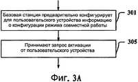 Этап 305' и этап 309' соответствуют этапу 205' и этапу 209', описанным относительно Фиг. 2B, соответственно. На этапе 305' базовая станция принимает запрос активации от пользовательского устройства. Как описано выше, запрос активации может включать в себя информацию, указывающую режим совместной работы, выбранный с помощью пользовательского устройства; или может не включать в себя такую информацию. На этапе 309' базовая станция возвращает пользовательскому устройству ответ активации.Step 305 ′ and step 309 ′ correspond to step 205 ′ and step 209 ′ described with respect to FIG. 2B, respectively. At step 305 ', the base station receives an activation request from the user device. As described above, the activation request may include information indicating a collaboration mode selected by the user device; or may not include such information. At