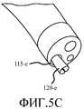 Фиг. 3A-3C - поперечные сечения сжатого и расширенного расширяемого опорного устройства, расположенного вблизи намеченной зоны лечебного воздействия, в соответствии с различными вариантами осуществления.FIG. 3A-3C are cross-sections of a compressed and expanded expandable support device located near the intended treatment area, in accordance with various embodiments.
