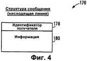 На фигуре 4 показан пример структуры нисходящего сигнала в соответствии с выполнением стадии 172 или 174 программы (показаны на фигуре 3), которое указано в целом ссылочным номером 176 и содержит поле 178 идентификатора получателя, в котором записывается идентификатор получателя для передаваемого сообщения, а также поле 180, в котором записывается информация, полученная на стадии 170 (показана на фигуре 3). Таким образом, сообщения, передаваемые по нисходящим каналам, представляют собой пакеты цифровых данных. Однако в других вариантах сообщения, передаваемые по нисходящим каналам, могут представлять собой аналоговые сообщения или потоки цифровых данных, которые не являются пакетами цифровых данных.Figure 4 shows an example of the structure of the downward signal in accordance with the execution of