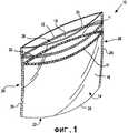 На фиг.1 показан вид в перспективе одного из примеров гибкой упаковки с повторно укупориваемым фиксатором на основе клейкого материала, проиллюстрированным открытым,Figure 1 shows a perspective view of one example of a flexible packaging with a resealable adhesive-based latch, illustrated open,