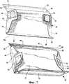 Соединительная часть 18 выступает из верхнего края или линии сгиба 54 задней панели 34 для того, чтобы располагаться между верхней и нижней частями заготовки 30 и 32 и соединять их. Нижняя створка 60 расположена на стороне задней панели 34, противоположной соединительной части 18, и выступает из нижнего края или линии сгиба 62 задней панели 34. Нижняя створка 60 содержит боковые края 64, проходящие в целом перпендикулярно от нижней линии сгиба 62 задней панели к нижнему краю 66. Нижняя створка 60 дополнительно содержит промежуточную линию сгиба 68, проходящую в целом параллельно нижней линии сгиба 62 задней панели и разделяющую нижнюю створку 60 на нижнюю панель или стенку 70, расположенную рядом с нижней линией сгиба 62 задней панели, и переднюю панель или стенку 72, расположенную снаружи промежуточной линии сгиба 64. Передняя панель 72 содержит большую сторону и изображена в целом прямоугольной, но может альтернативно в случае необходимости содержать сужающиеся вовнутрь боковые края.The connecting