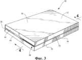 на фиг.4 представлено поперечное сечение поддающейся повторному закрытию упаковки согласно фиг.3, выполненное в основном вдоль линии 4-4;FIG. 4 is a cross-sectional view of a resealable packaging of FIG. 3, made generally along line 4-4;