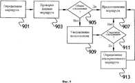 Фиг.9 показывает, по меньшей мере, один примерный сбор данных при изменении маршрута;FIG. 9 shows at least one exemplary data collection when a route changes;