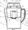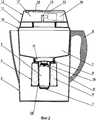 Известно устройство для очистки жидкости по патенту США №5225078 (Ametek, Inc., опубл. 06.07.1993, B01D 27/02). Кувшин для фильтрации используют в бытовых условиях для очистки жидкости. Кувшин состоит из корпуса для очищенной жидкости, приемной емкости для неочищенной жидкости, разделенной сильфоном на верхнюю и нижнюю части, фильтрующего элемента, крышки с отверстием для выравнивания давления. Перепад давления в данном фильтрующем устройстве создается при нажатии потребителем рукой на эластичный участок, располагающийся в центральной части крышки.A device for cleaning liquid according to US patent No. 5225078 (Ametek, Inc., publ. 06.07.1993, B01D 27/02). A jug for filtration is used in domestic conditions for cleaning liquids. The jug consists of a housing for purified liquid, a receiving tank for raw liquid, divided by a bellows into the upper and lower parts, a filter element, a cover with an opening for pressure equalization. The pressure drop in this filtering device is created when the consumer presses a hand on an elastic section located in the central part of the cover.