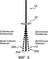 На фиг.9 схематично показано, каким образом хирург может оценить сгибательную контрактуру коленного сустава. В соответствии со способом, который показан на фиг.9, схематично иллюстрирующей позиционирование дистального отдела 10 бедренной кости относительно проксимального отдела 12 большеберцовой кости, после установки пробного дистального бедренного компонента 18 между резецированным дистальным отделом бедренной кости и нерезецированным проксимальным отделом большеберцовой кости, можно разогнуть коленный сустав на максимально возможную величину. Если допустимая степень разгибания меньше требуемой, меньше величины разгибания естественного здорового коленного сустава и/или меньше величины разгибания коленного сустава пациента перед хирургическим вмешательством (что схематически показано на фиг.9 пунктирной линией 300), то для хирурга это может служить доказательством, что имеет место сгибательная контрактура, а также того, что показана более глубокая резекция дистального участка бедренной кости (например, того, что коленный сустав слишком «тугой»). В таких случаях могут снова присоединить режущий блок и осуществить вторичную резекцию дистального отдела бедренной кости для повторной оценки с применением того же или другого дистального бедренного пробного компонента. Если же достигается достаточное максимальное разгибание (что схематично показано пунктирной линией 302), то это может указывать хирургу на то, что степень резекции дистального бедренного отдела удовлетворительна и нет необходимости в повторной резекции. Следует понимать, что, хотя разделительная линия (сплошная линия 304) между линиями, соответствующими сгибательной контрактуре и достаточному разгибанию, показана на фиг.9 как имеющая место при сгибании порядка 0 градусов, совершенно не обязательно, чтобы она занимала именно такое положение, - в зависимости от конкретных параметров пациента и иных факторов, она может соответствовать и сгибанию больше или меньше 0 градусов.Figure 9 schematically shows how a surgeon can evaluate knee flexion contracture. According to the method of FIG. 9, which schematically illustrates the positioning of the