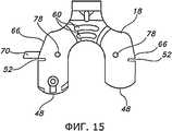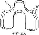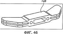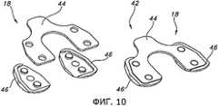 Фиг.10 иллюстрирует набор 42 пробных дистальных бедренных компонентов 18, имеющих модульную конструкцию. В варианте, изображенном на фиг.10, каждый пробный дистальный бедренный компонент 18 содержит опорную пластину 44, которая может соединяться с парой модульных прокладок 46 для образования дистального бедренного пробного компонента 46 конкретного размера.Figure 10 illustrates a set of 42 trial distal