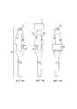 [075] В еще одном варианте осуществления крепежных элементов, показанных на фиг. 12А-В и 13А-В представлен односторонний гибридный копьевидный элемент 60, содержащий головку 61 копьевидного элемента и область штока 68, который взаимодействует с множеством кольцевой стержней 66, 67 и/или стержней 65а, 65b для скрепления клапанного модуля с поддерживающим модулем. Головка 61 копьевидного элемента включает два сегмента, разделенных удлиненным отверстием 64, одну выемку 63 на внешней кромке одного из сегментов и проушину 62. Головка 61 одностороннего копьевидного элемента 60 может иметь меньший диаметр, чем диаметр штока 68, и/или сужаться от первого конца, где проушина 62 расположена по направлению к выемке 63, но расширения на одной стороне для обеспечения клиновидной формы видны прямо над выемкой 63 на фиг. 12B, 13B. Диаметр или ширина головки 61 копьевидного элемента на клиновидном элементе не превышает диаметр или ширину штока 68. Проволока для сборки может быть продета через проушину 62 на верхней части головки 61 копьевидного элемента.[075] In yet another embodiment of the fasteners shown in FIG. 12A-B and 13A-B show a one-way hybrid lance-shaped