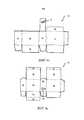 На Фиг. 4c, описанной выше, левая боковая стенка 58 выдвижной части и правая боковая стенка 60 выдвижной части являются прямоугольными, чтобы они соответствовали прямоугольной форме левой боковой стенки 46 рукава и правой боковой стенки 48 рукава, соответственно, внутренней оболочки 14. Однако в альтернативном варианте выполнения, который не показан, левая боковая стенка 58 выдвижной части и правая боковая стенка 60 выдвижной части являются трапецеидальными. В этом варианте выполнения верхний край и нижний край левой боковой стенки 58 выдвижной части остаются параллельными друг другу, но передний край и задний край левой боковой стенки 58 выдвижной части не параллельны. Аналогичным образом, верхний край и нижний край правой боковой стенки 60 выдвижной части остаются параллельными друг другу, по передний край и задний край правой боковой стенки 60 выдвижной части не параллельны. Угол между верхним или нижним краями боковых стенок 58, 60 выдвижной части и передним или задним краями боковых стенок 58, 60 выдвижной части может составлять от около 85 до около 95°, более предпочтительно от около 88 до около 93°. Две боковые стенки 58, 60 выдвижной части предпочтительно имеют одинаковую форму, и предпочтительно нижний край боковых стенок 58, 60 выдвижной части длиннее, чем верхний край боковых стенок 58, 60 выдвижной части. Когда листовая заготовка 116 собрана, выдвижной элемент 16 имеет форму трапецеидальной призмы. Выдвижной элемент 16 имеет трапецеидальное продольное сечение, по существу параллельное боковым стенкам 58, 60 выдвижной части. Трапецеидальная форма обеспечивает трение между выдвижным элементом 16 и внутренней оболочкой 14, когда выдвижной элемент 16 перемещается относительно внутренней оболочки 14. Это ограничивает скользящее перемещение выдвижного элемента 16 относительно внутренней оболочки 14, и делает любые другие удерживающие средства (например, ограничительный язычок 62 и вырез 50 или язычки 53, 49 для зацепления) не нужными. Конкретные углы между верхним или нижним краями боковых стенок выдвижной части и передними или задними краями боковых стенок выдвижной части могут быть выбраны в соответствии с необходимостью, чтобы создавать нужное трение между выдвижным элементом 16 и внутренней оболочкой 14. При другом альтернативном расположении передняя стенка 54 выдвижной части и задняя стенка 56 выдвижной части представляют собой трапеции, но левая боковая стенка 58 выдвижной части и правая боковая стенка 60 выдвижной части являются прямоугольными. В этом случае выдвижной элемент 16 имеет трапецеидальное продольное сечение, по существу параллельное передней стенке 54 выдвижной части и задней стенке 56 выдвижной части.In FIG. 4c described above, the