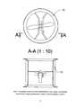 Форма секций и порядок их установки выбирается таким образом, чтобы минимизировать свободное пространство между мотоустановками (3). Допустимо линейное размещение, когда мотоустановки располагаются в одной горизонтальной плоскости, симметрично относительно друг друга, и размещение в шахматном порядке, когда мотоустановки располагаются со смещением относительно друг друга в горизонтальной и/или в вертикальной плоскостях (в этом случае мотоустановки устанавливаются на двух уровнях по высоте, как показано на фиг. 24, причем мотоустановки верхнего уровня устанавливаются в свободное пространство между мотоустановками нижнего уровня), что является более универсальным и предпочтительным вариантом. Также секции могут быть ограничены аэродинамическими колодцами (15) с внутренним диаметром равным или большим, чем диаметр пропеллера (10) мотоустановки (3).The shape of the sections and the order of their installation is selected in such a way as to minimize the free space between the motor installations (3). Linear placement is permissible when the motor-units are located in one horizontal plane symmetrically relative to each other, and staggered when the motor-units are offset with respect to each other in horizontal and / or vertical planes (in this case, the motor-units are installed at two levels in height as shown in Fig. 24, and the upper level motor installations are installed in the free space between the lower level motor installations), which is more universal and preferred option. Sections can also be limited by aerodynamic wells (15) with an inner diameter equal to or greater than the diameter of the propeller (10) of the motor unit (3).