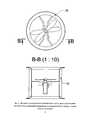 Фиг. 3 - вид сверху на мотоустановку электрического типа с двумя пропеллерами противоположного вращения, размещенную в аэродинамическом колодце, и разрез колодца по линии В;FIG. 3 is a top view of an electric type motor installation with two opposite-rotation propellers located in an aerodynamic well, and a section of the well along line B;