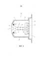 На фиг. 2 схематически представлен вариант осуществления одноразовой капсулы согласно объекту изобретения. На виде А схематически представлен разрез варианта осуществления одноразовой капсулы 1 вместе с вариантом осуществления участка выдачного устройства перед использованием. Одноразовая капсула 1 содержит внутреннее пространство, служащее для размещения в нем соответствующего объема экстрагируемого или растворимого продукта, например, молотого кофе, растворимого кофе, шоколада, какао, чая, суповой смеси и т.д. Понятно, что одноразовая капсула 1 подходит также для размещения в ней порошка, предназначенного для образования коллоида после взаимодействия с текучей средой F, поданной выдачным устройством 1а. Капсула 1 может содержать порцию экстрагируемого растворимого или коллоидного продукта, пригодного для приготовления одной порции напитка, предпочтительно одной чашки напитка, например, от 30 до 200 мл приготовленного напитка. Одноразовая капсула может представлять собой однопорционную упаковку.In FIG. 2 schematically shows an embodiment of a disposable capsule according to an aspect of the invention. Figure A is a schematic sectional view of an embodiment of a