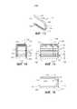 на ФИГ. 17 представлен вид сбоку альтернативной кассеты, которую можно применять в сочетании с клипсонакладывателем, изображенным на ФИГ. 1-12, или любым другим подходящим клипсонакладывателем, причем кассета показана с удаленными частями для иллюстрации смещающего элемента и пластины толкателя, расположенной между смещающим элементом и содержащимися в ней клипсами;in FIG. 17 is a side view of an alternative cassette that can be used in combination with the clip-on applicator shown in FIG. 1-12, or any other suitable clip-on device, the cartridge shown with the parts removed to illustrate the biasing element and the plunger plate located between the biasing element and the clips contained therein;