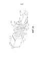 Дополнительно к указанному выше, как показано на ФИГ. 11, пусковая гайка 163 может быть выполнена с возможностью повторно зацеплять пусковой исполнительный механизм 168 по мере оттягивания пусковой гайки 163 проксимально. Как описано выше, пусковой исполнительный механизм 168 поворачивается вниз, когда пусковой исполнительный механизм 168 достигает дистального конца 114 продольного паза 113, и в результате этого пусковой исполнительный механизм 168 может все еще находиться в своем повернутом вниз положении, когда пусковая гайка 163 оттягивается проксимально для повторного зацепления пускового исполнительного механизма 168. Как показано на ФИГ. 11, пусковой штифт 172, проходящий из пусковой гайки 163, может зацеплять проксимальное плечо 170b пускового исполнительного механизма 168, и при дальнейшем оттягивании пусковой гайки 163 пусковая гайка 163 может поворачивать пусковой исполнительный механизм 168 вверх так, что выступы 171a и 171b, проходящие из плеч 170a и 170b соответственно, могут повторно войти в продольную часть продольного паза 113. После этого пусковая гайка 163 может быть оттянута до возврата пускового исполнительного механизма 168 и проходящего из него пускового элемента 165 в их начальные, или неактивированные, положения, показанные на ФИГ. 5. В таких обстоятельствах пусковой элемент 165 может быть извлечен из кассеты с клипсами 130 по мере оттягивания пускового элемента 165 проксимально пусковой гайкой 163 так, что смещающий элемент 136 может смещать новую клипсу 140 в пусковую камеру кассеты с клипсами 130. После оттягивания пускового элемента 165 и пускового исполнительного механизма 168 в их начальные положения и расположения следующей клипсы 140 внутри пусковой камеры пусковой привод 160 может быть повторно активирован для перемещения пусковой гайки 163 и пускового элемента 165 дистально для продвижения следующей клипсы 140 в концевой эффектор 120. Аналогичным образом, пусковая гайка 163 может повторно активировать привод обжатия 180 по мере повторного перемещения пусковой гайки 163 дистально для деформации следующей клипсы 140. После этого пусковая гайка 163 может быть оттянута для сброса положения привода обжатия 180 и пускового привода 160. Данный процесс может повторяться до приложения достаточного числа клипс 140 к целевой ткани и/или до израсходования числа клипс 140, содержащихся внутри кассеты с клипсами 130. В случае если существует потребность в дополнительных клипсах 140, израсходованная кассета с клипсами 130 может быть удалена из стержня 110, а сменная кассета с клипсами 130, содержащая дополнительные клипсы 140, может быть вставлена в стержень 110. В некоторых обстоятельствах по меньшей мере частично израсходованная кассета с клипсами 130 может быть заменена на идентичную или по меньшей мере почти идентичную сменную кассету с клипсами 130, тогда как в других обстоятельствах кассета с клипсами 130 может быть заменена на кассету с клипсами, имеющую более или менее пяти содержащихся в ней клипс 140, и/или, например, кассету с клипсами, имеющую клипсы, отличные от содержащихся в ней клипс 140.In addition to the above, as shown in FIG. 11, the