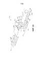 Как описано выше, концевой эффектор 620 может быть избирательно прикреплен к стержню 610 и отсоединен от него. Можно отметить, что принципы, описанные в связи с концевым эффектором 620 и стержнем 610, могут быть равным образом применимы к концевому эффектору 120 и стержню 110 варианта осуществления, помимо прочего, описанного на ФИГ. 1. Учитывая это, как также показано на ФИГ. 27, один из роботизированных манипуляторов 30 может быть избирательно зацеплен с концевым эффектором 120 клипсонакладывателя или альтернативно с любым другим подходящим концевым эффектором, таким как, например, концевой эффектор хирургического сшивающего инструмента. В таких обстоятельствах концевой эффектор 120 может быть избирательно заменен на другой концевой эффектор, и в результате этого один роботизированный манипулятор 30 можно использовать для выполнения более одной функции. Иными словами, клипсонакладыватель 100 может содержать сменный модуль загрузки, который может быть заменен на или обменен с другим модулем загрузки клипсонакладывателя и/или любым другим подходящим сменным модулем загрузки. Как показано на ФИГ. 29, концевой эффектор 120 и стержень 110 клипсонакладывателя 100 можно использовать с системой хирургического инструмента, содержащей рукоятку 700. Рукоятка 700 может содержать исполнительный механизм 701, который можно задействовать или прижать к захвату 702 для приложения поворотного движения к приводному винту 161, как описано выше. В некоторых случаях поворот исполнительного механизма 701 может механически передаваться на приводной винт 161, тогда как в других случаях исполнительный механизм 701 может задействовать двигатель, функционально соединенный с приводным винтом 161.As described above, the