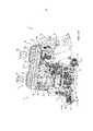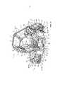 [0060] Фиг. 5Е в аксонометрии спереди слева изображает силовую передачу и рычаг переключения передач с фиг. 5С, включая блок рулевого управления и часть рамы транспортного средства фиг. 1.[0060] FIG. 5E is a perspective view from the front left of the power train and the gear shift lever of FIG. 5C, including the steering unit and part of the vehicle frame of FIG. one.