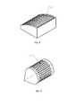 Осколочные модули изготавливают, например, из прутка, полученного из стали 60С2, путем штамповки, предпочтительно горячей объемной штамповки, причем большая шероховатость отштампованных осколочных модулей способствует их более прочному соединению встык при изготовлении из них осколочных облицовок различных форм также предпочтительно с помощью горячей объемной штамповки (фиг. 4-7).Fragmentation modules are made, for example, from a bar made of 60C2 steel by stamping, preferably hot forging, and the greater roughness of the stamped fragmentation modules contributes to their more durable butt joint when manufacturing fragmented shells of various shapes from them, also preferably using hot forging ( Fig. 4-7).