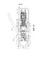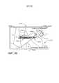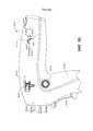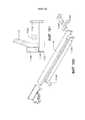 На ФИГ. 19 представлен частичный вид сверху участка другого варианта осуществления хирургического инструмента, на котором участок корпуса опущен, чтобы продемонстрировать систему блокировки приводного блока инструмента, и причем сплошными линиями показан рычаг втягивания в незадействованном положении, а пунктирными линиями показан рычаг втягивания после начальной активации.In FIG. 19 is a partial top view of a portion of another embodiment of a surgical instrument, in which a portion of the body is omitted to demonstrate a locking system of a tool drive unit, and wherein the retract lever in the idle position is shown in solid lines, and the retract lever after the initial activation is shown in broken lines.