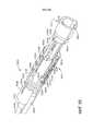 На ФИГ. 53 представлен частичный вид в поперечном сечении в перспективе одноразового загрузочного блока, манжеты и ствола, изображенных на ФИГ. 38, на котором показан одноразовый загрузочный блок, входящий в ствол, и дополнительно показана манжета в исходном положении относительно ствола.In FIG. 53 is a partial cross-sectional perspective view of a disposable loading unit, cuff, and barrel shown in FIG. 38, which shows a disposable loading unit included in the barrel, and further shows the cuff in the initial position relative to the barrel.