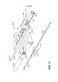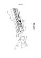 На ФИГ. 60 представлен частичный вид в поперечном сечении в перспективе ствола и одноразового загрузочного блока, изображенных на ФИГ. 59, на котором показан одноразовый загрузочный блок, частично вставленный в ствол, и дополнительно показана защелка в незаблокированном положении.In FIG. 60 is a partial cross-sectional perspective view of the barrel and the disposable loading unit shown in FIG. 59, which shows a disposable loading unit partially inserted into the barrel, and further shown a latch in an unlocked position.