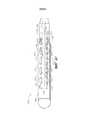на ФИГ. 64 представлен частичный вид в вертикальной проекции в поперечном сечении кассеты со скобками, изображенной на ФИГ. 56, на котором показана скобка в вытолкнутом положении и в деформированной конфигурации, показанной на ФИГ. 62;in FIG. 64 is a partial vertical cross-sectional view of the cassette with brackets shown in FIG. 56, which shows a bracket in an ejected position and in a deformed configuration shown in FIG. 62;
