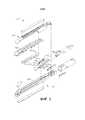 на ФИГ. 23 представлен вид в перспективе в поперечном сечении кассеты и салазок, изображенных на ФИГ. 22, на котором показаны скобки в невытолкнутых положениях, показанных на ФИГ. 22;in FIG. 23 is a perspective view in cross section of a cartridge and a slide shown in FIG. 22, which shows brackets in non-popped positions shown in FIG. 22;