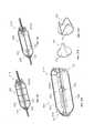[0030] Надувное медицинское устройство может также содержать усиливающие компоненты на оболочке, имеющей проксимальную суживающуюся часть, дистальную суживающуюся часть и полосы, проходящие между ними. Полосы могут быть сконфигурированы таким образом, чтобы их можно было поместить между линиями внешних сгибов оболочки.[0030] The inflatable medical device may also contain reinforcing components on the shell having a proximal tapering part, a distal tapering part, and strips extending between them. The strips can be configured so that they can be placed between the lines of the outer folds of the shell.