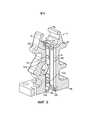 [0038] Также со ссылкой на фиг. 1 ниже описано функционирование несущего устройства 32 пластины для варианта осуществления, имеющего направляющую несущего устройства пластины или вставку 100, установленную в верхней части 18 расходомера 12. Как описано выше, нижний привод 36 и верхний привод 38 функционируют для перемещения несущего устройства 32 диафрагменной пластины вертикально в расходомере 12. Ниже рассмотрено перемещение несущего устройства 32 диафрагменной пластины из нижней камеры 20 в верхнюю камеру 22; для упрощения, промежуточные этапы, такие как приведение в действие пластины 56 задвижки или удаление прижимной планки 44 и уплотнительной планки 40 ниже не описаны. Специалисту в данной области техники ясно, что кроме различий по направлению, рассмотрение перемещения несущего устройства 32 диафрагменной пластины от верхней камеры 22 до нижней камеры 20 должно быть, по существу, одинаковым. Каждый привод 36, 38 включает в себя пару шестерен 36а, 38а, соответственно; шестерни 36а, 38а выполнены с возможностью выравнивания и взаимодействия с соответствующими канавками 32а на несущем устройстве 32 пластины. Канавки 32а расположены в двух столбиках на противоположных концах несущего устройства 32 диафрагменной пластины. В примере фиг. 1, канавки 32а включают в себя множество зубьев, выставленных по линии проходящей в направлении перемещения несущего устройства 32. Каждый столбик канавки 32а образует зубчатую рейку, которую можно также называть рейкой зубчатой передачи. Шестерни 36а, 38а можно также называть прямозубыми шестернями. Когда несущее устройство 32 диафрагменной пластины расположено в нижней камере 20, нижние приводные шестерни 36а взаимодействуют с канавками 32а несущего устройства диафрагменной пластины так, что приведение в действие нижнего привода 36 обеспечивает перемещение несущего устройства 32 диафрагменной пластины вертикально вверх из нижней камеры в верхнюю камеру 22. Когда несущее устройство 32 диафрагменной пластины перемещается в верхнюю камеру 22, верхние приводные шестерни 38а взаимодействуют с канавками 32а несущего устройства диафрагменной пластины через вырезы 131, 141 (фиг. 2) в первой стороне 130, проходящие до первого удлиненного участка 151 передней стороны 150 и второй стороне 140, проходящие до второго удлиненного участка 152 передней стороны 150 вставки 100, и когда несущее устройство 32 диафрагменной пластины достигает некоторой высоты верхней камеры 22, нижние приводные шестерни 36а выходят из зацепления с канавками 32а несущего устройства диафрагменной пластины. Продолжая ссылки на фиг. 1, вставка 100 центрирует и направляет несущее устройство 32 диафрагменной пластины при его перемещении через верхнюю камеру 22. Приведение в действие верхнего привода 38 дополнительно поднимает несущее устройство 32 диафрагменной пластины для прохода за верхнюю часть 18 расходомера 12 для удаления. В альтернативных вариантах осуществления нижний привод 36 и вал 54 зубчатой передачи с расходомера 12 могут содержать иные компоненты вместо гаек, имеющие разнообразные геометрические формы, которые должны приводить в действие пластину 56 задвижки.[0038] Also with reference to FIG. 1, the operation of the
