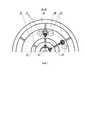 На фиг. 1 показан продольный разрез двухконтурного турбореактивного двигателя; на фиг. 2 показан поперечный разрез А-А на фиг. 1In FIG. 1 shows a longitudinal section through a turbofan engine; in FIG. 2 shows a cross section AA in FIG. 1