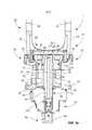 На фиг. 3а показан разрез первого примера выполнения ротационного устройства 1 и структуры 10 ротационного устройства по изобретению. Ротационное устройство 1 по изобретению включает ротационное устройство и прикрепленное к нему поворотное устройство 24, а также электрический проводник 96 адаптера 48, показанные на фиг. 9. Адаптер 48 предпочтительно прикреплен к нижней поверхности 94 поворотного устройства 24 (как показано на фиг. 3b и 4b). Поворотное устройство 24 частично предпочтительно присоединено к нижней поверхности 92 второй наружной корпусной части 14. В этой связи, нижняя поверхность представляет собой с учетом ориентации подвески ротационного устройства противоположную средствам подвески сторону структуры ротационного устройства. Структура (конструкция) 10 ротационного устройства 1 включает в качестве принципиальных компонентов первую внутреннюю корпусную часть 12, вторую наружную корпусную часть 14, опорное средство 20, соединительное средство 22, осевой канал 16, имеющий два конца 16.1 и 16.2, первые каналы 26, вторые каналы 30 и соединения 28. Конец 16.1 включает держатель электрического проводника (не показан). Первая внутренняя корпусная часть 12 является цилиндрической, через нее проходит осевой канал 16, предназначенный для электрических проводников, и первый канал 26 для прохождения рабочей среды. Осевой канал 16 образует соединение на том конце цилиндрической первой внутренней корпусной части, который лежит противоположно поворотному устройству 24, соединенному со структурой ротационного устройства 1, и снаружи поворотного устройства 24. Другой конец 16.2 осевого канала 16 является концом, который находится на том конце первой внутренней корпусной части 12, к которому должно прикрепляться поворотное устройство.FIG. 3a shows a section through a first exemplary embodiment of the