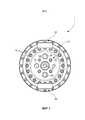 В этой связи следует понимать, что первые каналы и соединения образуют группу каналов, проходящих через структуру ротационного устройства и открытых/доступных при всех ориентациях ротационного устройства. В то же время следует понимать, что термин электропроводник относится к электрическим проводникам, предназначенным для передачи одного или более напряжений, токов или электрических сигналов.In this regard, it should be understood that the first channels and connections form a group of channels passing through the structure of the rotating device and open / accessible in all orientations of the rotating device. At the same time, it should be understood that the term electrical conductor refers to electrical conductors designed to carry one or more voltages, currents, or electrical signals.