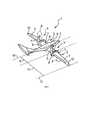 Изобретение реализуется на базе летательного аппарата вертикального взлета и посадки 1, например, схемы летающее крыло (см. Фиг. 2 - Фиг. 4), на котором размещены пара подъемно-маршевых силовых установок 2 и пара подъемных силовых установок 3, используемых для создания вертикальной тяги в режиме висения. Пара подъемно-маршевых силовых установок 2 непосредственно размещена на концах коромысла 4, которое может поворачиваться относительно оси 5 (см. Фиг. 3). В свою очередь, пара силовых установок 3 может независимо друг от друга свободно поворачиваться относительно оси 6 (см. Фиг. 3).The invention is implemented on the basis of a vertical take-off and