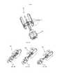 На фиг. 13H-13J представлены виды в поперечном разрезе устройства с аппликатором, показанного на фиг. 13F и 13G, иллюстрирующие раскрывающий механизм аппликатора, согласно одному из примеров осуществления настоящего изобретения;FIG. 13H-13J are cross-sectional views of the applicator device shown in FIG. 13F and 13G, illustrating an applicator disclosure mechanism in accordance with one embodiment of the present invention;