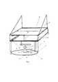 2. Флюгерный режим - при срабатывании конечного выключателя заднего хода ветростенки - А подается команда на ее шаговый двигатель, который минимизирует ее сопртивление ВП. Одновременно от этого конечного выключателя подается команда на шаговый двигатель ветростенки Б, распологающейся в этот момент в переднем положении своего хода в флюгерном режиме, переводя ветростенку +Б в рабочий режим. При этом ветростенка - А в флюгерном режиме движется навстречу ВП к переднему краю короба под воздействием ветростенки +Б, связанной с ветростенкой -А блоком и тросом, и двигающейся в рабочем режиме к заднему краю короба. Далее эти режимы поочередно повторяются на обеих ветростенках. Ветростенки связаны между собой тросом, перекинутым через блок. В любой момент работы ВЭУ одна из ветростенок находится в рабочем режиме +, а другая - в флюгерном, причем ветростенка находящаяся в рабочем режиме движется сама и перемещает ветростенку в флюгерном режиме с помощью троса, перекинутого через блок.2. Weather vane mode - when the limit switch of the reverse run of the wind wall - A, a command is sent to its stepper motor, which minimizes its resistance to the VP. At the same time, a command is sent from this limit switch to the stepper motor of the wind wall B, which at this moment is in the forward position of its stroke in the vane mode, transferring the wind wall + B to the operating mode. In this case, the wind wall - A in the vane mode moves towards the VP to the front edge of the box under the influence of the wind wall + B, connected to the wind wall - A by the block and the cable, and moving in the operating mode to the rear edge of the box. Further, these modes are alternately repeated on both wind turbines. The wind racks are interconnected by a cable thrown over the block. At any moment of the wind turbine operation, one of the windwalls is in the operating mode +, and the other in the weather vane, and the windwall, which is in the operating mode, moves by itself and moves the windwall in the weather vane mode with the help of a cable thrown over the block.