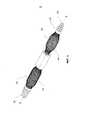 На фиг. 4 представлен вид в перспективе, показывающий канал (90), проходящий через первое устройство (30) и второе устройство (60). Как показано, части первого цилиндрического корпуса (32), второго цилиндрического корпуса (62), первого жесткого кончика (50) и второго жесткого кончика (78) разрезаны. В предпочтительном варианте осуществления, показанном на фиг.4, первый жесткий кончик (50) снабжен отверстием (56), и второй жесткий кончик (78) снабжен отверстием (84). Отверстия (56, 84) обеспечивают вход и выход инструментов, композиций и так далее в канал (90).FIG. 4 is a perspective view showing a duct (90) passing through the first device (30) and the second device (60). As shown, portions of the first cylindrical body (32), the second cylindrical body (62), the first rigid tip (50), and the second rigid tip (78) are cut. In the preferred embodiment shown in FIG. 4, the first rigid tip (50) is provided with an opening (56) and the second rigid tip (78) is provided with an opening (84). The holes (56, 84) allow the entry and exit of instruments, compositions, and so on into the channel (90).