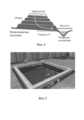 [0042] фиг. 4 иллюстрирует применение перфорированного листа при выщелачивании отвалов для золотодобывающей и горнодобывающей промышленности в соответствии с предпочтительным вариантом осуществления изобретения;[0042] FIG. 4 illustrates the use of a perforated sheet in the leaching of gold and mining waste heaps, in accordance with a preferred embodiment of the invention;