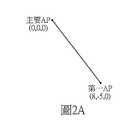必須注意的是,本發明所建立的拓樸地圖係以主要存取點為座標系統中的原點,也就是座標(0,0,0),並基於第一存取點與主要存取點的相對位置而將第一存取點的座標(如:8,-5,0)紀錄於主要存取點中,如圖2A所示。It must be noted that the topology map created by the present invention takes the main access point as the origin in the coordinate system, that is, the coordinate (0,0,0), and is based on the first access point and the main access point The relative position of the first access point (eg, 8,-5,0) is recorded in the main access point, as shown in FIG. 2A.