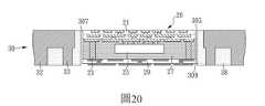 圖20為電性元件20插入導線架30貫穿開口305中之剖視圖。在此,接合樹脂38之內側壁表面309係鄰近於電性元件20之外圍邊緣,但與電性元件20之外圍邊緣保持距離。因此,電性元件20與導線架30間具有位於貫穿開口305中的間隙307,其中導線架30側向環繞該間隙307,且間隙307側向環繞電性元件20。FIG. 20 is a cross-sectional view of the