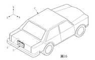 承上述,請參閱圖15所示,圖15為圖9的XV-XV剖面的剖面示意圖。殼本體11可相對於一垂直於地平面的垂直面呈傾斜設置,藉此,當本發明的電子顯示裝置U應用在設置在車輛C後方以作為後牌照的電子車牌時,顯示面板31可呈傾斜設置,以使得牌照燈L能投射在顯示面板31上。進一步來說,以本發明而言,框體12的內表面121可垂直於地平面,且殼本體11的內側表面111及外側表面112可相對於內表面121呈傾斜設置。此外,殼本體11的第一內側面1111至框體12的內表面121之間具有一第一預定間距G1,殼本體11的第二內側面1112至框體12的內表面121之間具有一第二預定間距G2,且第一預定間距G1可大於第二預定間距G2。換句話說,由於殼本體11相對於一垂直於地平面的垂直面是呈傾斜設置的,所以,第一內側面1111較第二內側面1112更遠離於框體12的內表面121。更進一步來說,由於本發明實施例的第一天線2是應用在LTE的操作頻帶,第二天線6是應用在藍牙的操作頻帶,因此,車輛C本身的金屬較容易對第一天線2造成影響,所以,設置在第一內側面1111上的第一天線2相對於設置在第二內側面1112上的第二天線6可位於較遠離車輛C的位置上。此外,殼本體11的第三內側面1113至框體12的內表面121之間可具有一第三預定間距G3,且第一預定間距G1可大於第三預定間距G3。換句話說,第一內側面1111較第三內側面1113更遠離於框體12的內表面121。In view of the above, please refer to FIG. 15, which is a schematic cross-sectional view of the XV-XV section of FIG. 9. The