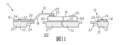 根據本實施例,如同大致在圖18中描繪的,凹陷部分1181是被配置以將半導體裝置19容置在引線指狀部118的一部分之下,並且直接附接至半導體裝置19。在某些實施例中,半導體裝置19的厚度可被薄化、或是整體的封裝高度被增大、或兩者皆是。在其它實施例中,在引線指狀部118與晶粒附接墊27之間的空間可以藉由晶粒附接材料20的接合厚度、或是藉由額外的遮罩及蝕刻技術來加以決定,以降低所述晶粒附接墊27在底部框13的側邊區段21的頂表面之下的厚度。According to the present embodiment, as generally depicted in FIG. 18 , recessed