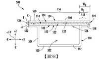 參見圖5A及圖5B,包裝500之基材150可包含剛性基材。舉例而言,在一些實施例中,基材150可為剛性盤510,其包含底部壁512及四個自底部壁512延伸之側壁514以界定具有一個敞開側516之側面敞開容器。盤510可包含與四個側壁514偶合且圍繞盤510之敞開側516的凸緣518。邊緣518可包含正面表面520。在一些實施例中,正面表面520可沿垂直於盤510之底部512的方向定向。在圖5A至圖5C中,正面表面520在圖5A至圖5C之座標軸的+Z方向上面向上。出於說明之目的,圖5A至圖5C中之比例經放大。多層膜100可為在本發明中先前所描述之任何多層膜。多層膜100可經定向以使得膜頂部正面表面102面向盤510之正面表面520且與其接觸(亦即,在圖5B之座標軸的-Z方向上)。多層膜100可具有符合盤510之凸緣518之外部形狀的形狀,使得多層膜100之複數個邊緣524鄰近盤510之凸緣518的外邊緣522安置。儘管包裝500在使用具有三層之多層膜100的情況下描述,但應理解併入本文中所揭示之組合物且具有大於三層之多層膜,例如多層膜200亦可用於製造包裝500。Referring to Figures 5A and 5B, the