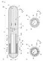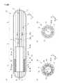 第1圖是表示第1實施形態的熱管的內部構造的圖,第1圖(a)是縱剖面圖,第1圖(b)是沿著第1圖(a)的IA-IA線切斷時的剖面圖,第1圖(c)是沿著第1圖(a)的IB-IB線切斷時的剖面圖。另一方面,第2圖是說明關於第1圖的熱管在動作中在內部產生的作動流體的流動的縱剖面圖。Fig. 1 is a diagram showing the internal structure of the heat pipe according to the first embodiment, Fig. 1 (a) is a longitudinal sectional view, and Fig. 1 (b) is along line IA - IA of Fig. 1 (a) The sectional view during cutting, Fig. 1 (c) is a sectional view when cutting along the line IB - IB of Fig. 1 (a). On the other hand, FIG. 2 is a longitudinal sectional view illustrating the flow of the working fluid generated inside the heat pipe in FIG. 1 during operation.