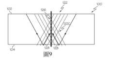 圖9示意性地繪示了在基板的出口表面處,準非繞射光束的範例基板及背反射;Figure 9 schematically depicts an example substrate and back reflection of a quasi-undiffracted beam at the exit surface of the substrate;