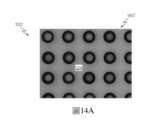 圖14A為在雷射處理期間根據本文描述及圖示的一個或更多個實施例將光阻劑聚合物施加到出口表面情況下之基板的出口表面的俯視圖,該基板具有穿過基板中蝕刻的孔洞;14A is a top view of the exit surface of a substrate with a photoresist polymer applied to the exit surface during laser processing, the substrate having a laser etched through the substrate, according to one or more embodiments described and illustrated herein. holes;