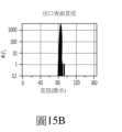 圖15B以圖表繪示了蝕刻在圖15A的基板中之孔洞的出口表面直徑的柱狀圖;15B graphically depicts a histogram of exit surface diameters of holes etched in the substrate of FIG. 15A;