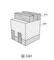 圖22H-22J闡明其顯示積體電路層之部分的斜角橫斷面視圖,其表示一種涉及預形成通孔位置之自對準等向蝕刻的方法中之各個操作,依據本發明之實施例。22H-22J illustrate oblique cross-sectional views showing portions of integrated circuit layers illustrating operations in a method involving self-aligned isotropic etching of pre-formed via locations, in accordance with embodiments of the present invention. .