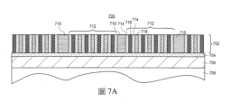 圖7A及7B闡明用以致能半導體層之極緊密節距最後圖案的目標基礎結構之橫斷面視圖,依據本發明之實施例。7A and 7B illustrate cross-sectional views of a target infrastructure used to enable very fine pitch final patterning of semiconductor layers, in accordance with an embodiment of the present invention.