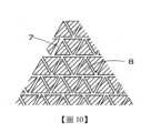 (第1實施形態之3)        在此情況,分歧體8呈三角形(圖中,正三角形)。圖9顯示,頂點朝上者和頂點朝下者交互配置,以朝向下游其數量增加的方式多列地配置。        圖10顯示,相對於圖9,以三角形的底邊之一半寬度,朝水平方向將橫方向的列移位的例子。        兩者的流路7都是,在氣化部3的全體形成為同一寬度W及同一深度D。(First Embodiment 3)        In this case, the