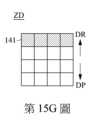 請參照第15A~15G圖。第15A~15G圖為繪示第12圖的第一滾輪140上之受偵測範圍ZD的影像變化示意圖,其中表面特徵141朝來回方向移動。具體而言,當使用者沿施壓方向DP壓向第一滾輪140時,第一滾輪140沿施壓方向DP移動,然後第一滾輪140彈性復位並沿相反於施壓方向DP的復位方向DR移動,因此,如第15A~15G圖所示,光學感應器160所獲取的影像順序記錄了表面特徵141朝下移動後再朝上移動的過程。藉此,分析元件170便能透過演算法判斷使用者對第一滾輪140進行下壓。Please refer to Figures 15A ~ 15G. Figures 15A to 15G are schematic diagrams illustrating the image changes of the detected range ZD on the